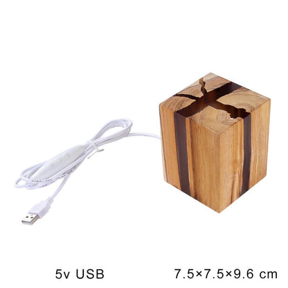 The Wooden Resin Cracked Lamp is a unique and eye-catching decorative lamp. It combines the natural beauty of wood with the mesmerizing effect of resin cracks. With dimensions of 8x8x9.6cm and a weight of 380g, it is a compact and portable lamp that can be placed on desks, shelves, or any desired location.